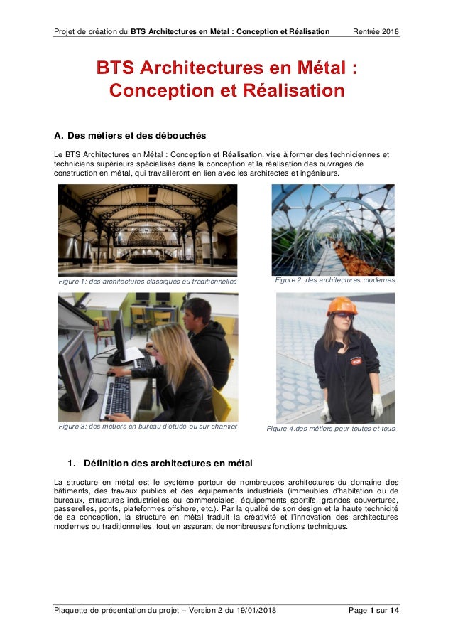 Télécharger la fiche de la formation. Conception et Réalisation vise à former des techniciennes et techniciens supérieurs spécialisés dans la conception et la réalisation des. Les diplômés du BTS Architectures en Métal.